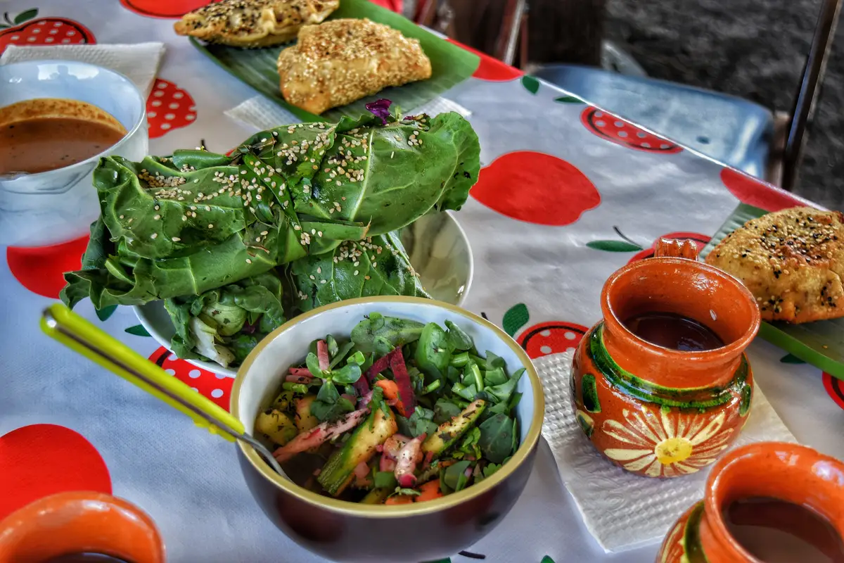 - Banquete chinampero orgánico y vegetariano preparado con ingredientes del campo (20 min).