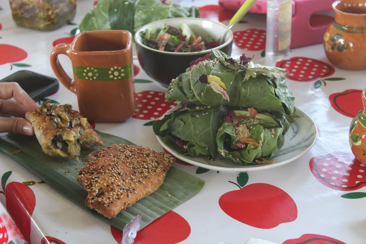 - Banquete chinampero orgánico y vegetariano preparado con ingredientes de la chinampa.